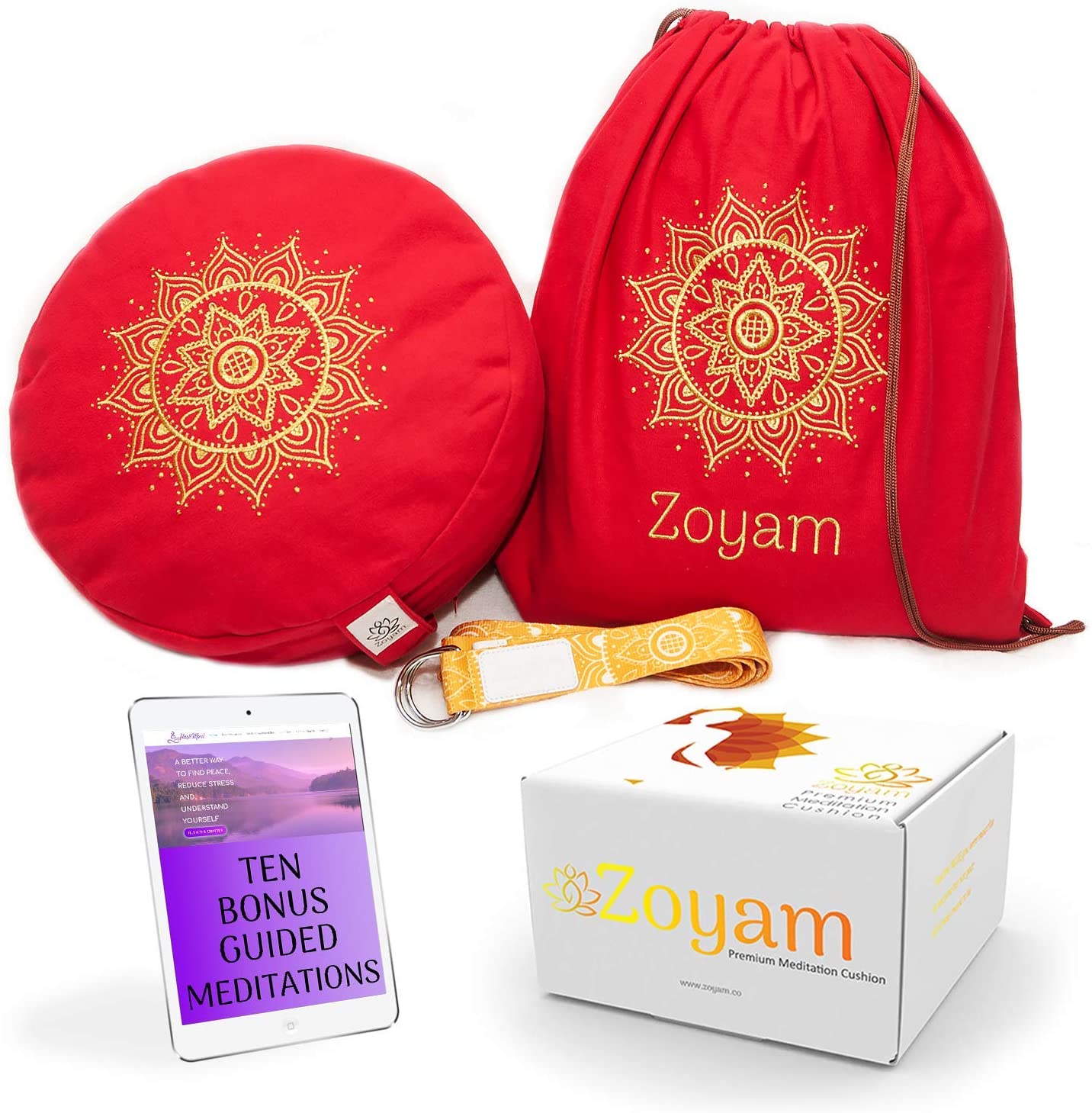 Zoyam Premium Meditation Cushion | Well made meditation pillows for sitting on floor | Easy to clean zafu pillow with Carry Bag Yoga Strap and Bonus Guided Meditations